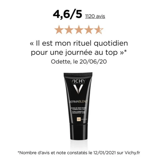 Dermablend Fond de Teint Fluide Correcteur corrige les défauts cutanés légers à modérés : rougeurs, taches et cernes. Les imperfections sont totalement corrigées sans démarcation et sans effet masque.