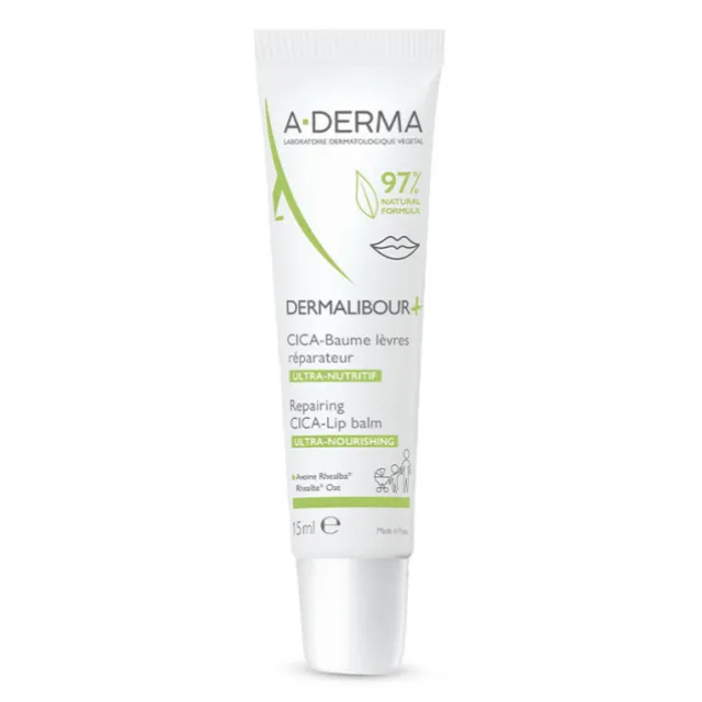 DERMALIBOUR+ CICA-Baume lèvres réparateur apaise, répare* dès 24h¹ et nourrit les lèvres irritées, gercées, fendillées et très sèches.