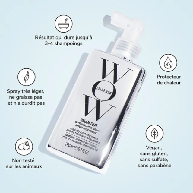 Le spray anti-frisottis ultra-léger donne l’impression que rien n’est sur les cheveux.