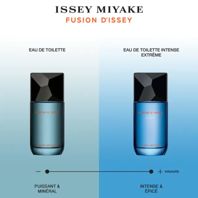 Une nouvelle écriture pour un classique de la masculinité : un parfum fougère pour homme. Un jeu de contraste entre le froid et le chaud. Pour la facette fraîche, l’éclat et la fraîcheur pétillante d’un citron zesté accompagnent la douceur lactée de l’eau de coco. Entre force et équilibre, ce parfum citronné pour homme s’associe à un puissant souffle d’air aromatique qui se mêle à la verticalité d’un accord minéral, solaire, profond. Sous-jacent, un accord de bois volcaniques chauds rencontre une essence de patchouli jouée en majeur. Cette fragrance volcanique repose au sein d’un flacon haut en contrastes, vertical, élégant, en verre poli d’un bleu profond. Au centre de ce flacon, la lumière est radiante, comme encapsulée. Noir, le capot est précieusement facetté à la façon d’une obsidienne. L’étui reprend le même code couleur bleu et noir. En ponctuation s’ajoute l’éclat orange et graphique du nom Fusion d’Issey. La beauté d’une création inspirée par la nature, façonnée par la main de l’homme.