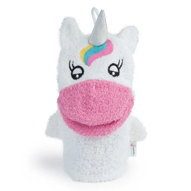 Rencontrez notre gant de toilette ‘Licorne’, un vrai animateur! Il n’y aura plus de bains ou douches désagréables avec lui!