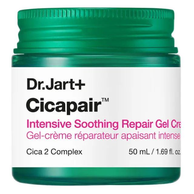 Le Intensive Soothing Repair Gel Cream Cicapair™ Dr Jart+ hydrate et apaise les peaux sensibles grâce à son Complexe d’Extraits de Centella Asiatica et d’Allantoïne.