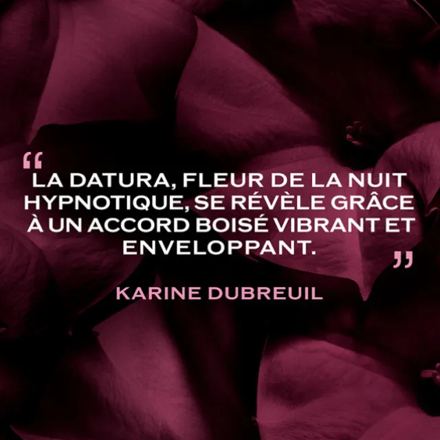 Au cœur de cette composition, des notes de Datura. Une fleur de nuit rare et précieuse qui laisse un sillage puissant.