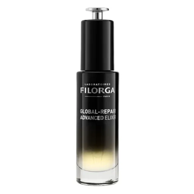 GLOBAL-REPAIR ADVANCED ELIXIR est un sérum jeunesse intensif à la texture huile légère, qui allie l’efficacité d’actifs anti-âge de pointe au pouvoir nutritif des huiles précieuses afin de corriger 10 signes de l’âge.