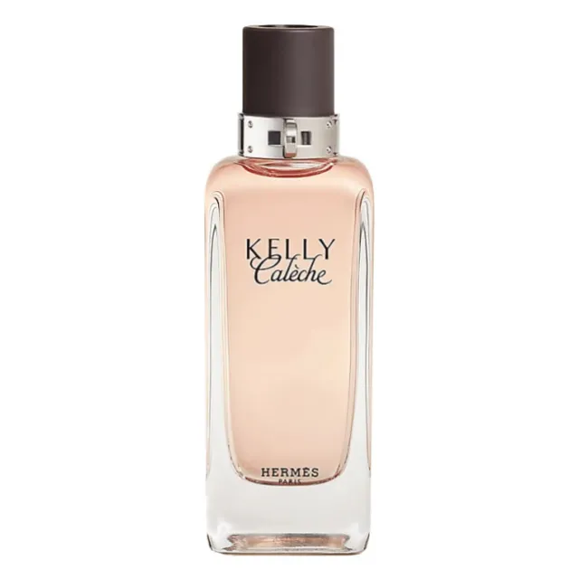 Souvenir d’une visite dans la réserve à cuir d’Hermès, expression d’un cuir léger, féminin et joyeux, Kelly Calèche, clin d’oeil à deux emblèmes de la maison, traduit les émotions tactiles et olfactives du parfumeur par l’évocation d’un cuir à fleur de peau, tanné par la caresse et brodé de pétales frais.