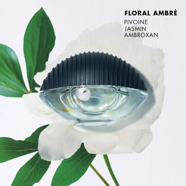 KENZO revisite le monde des fleurs et en fait un parfum. Une Rencontre Inédite entre la pivoine, le jasmin et les cristaux éclatants d’ambroxan®.