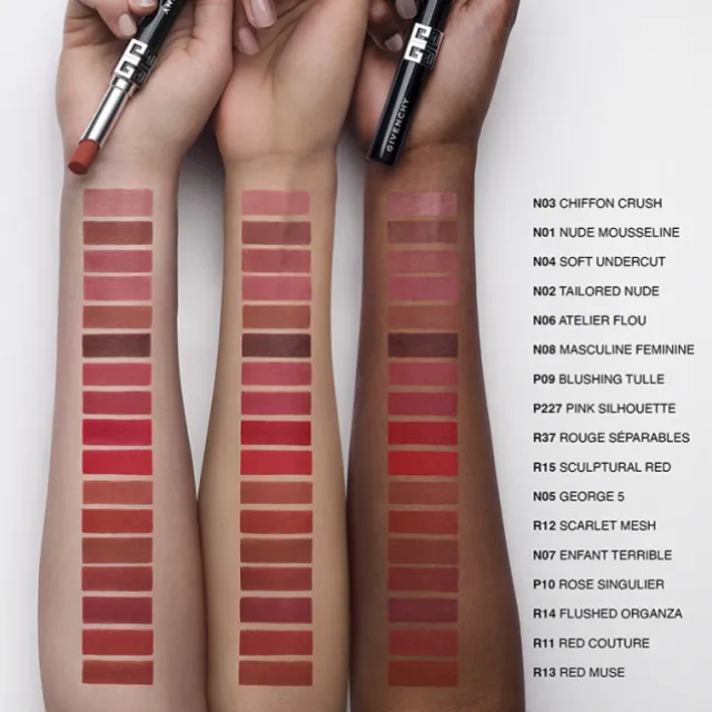 Le Rouge Velvet Matte de Givenchy associe une performance haute couvrance longue durée à une promesse d’hydratation pendant 6h*. Dès la première application, les lèvres paraissent galbées, lissées et repulpées. Une gamme aux 17 nuances de nude pour un effet bonne mine immédiat.