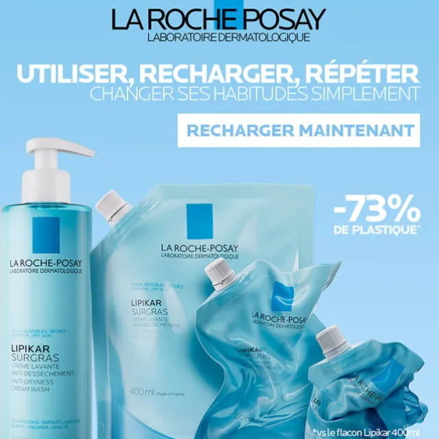La crème lavante Lipikar surgras de La Roche-Posay surgras nettoie en douceur les peaux sensibles et sèches du nourrisson à l’adulte sans les dessécher.
