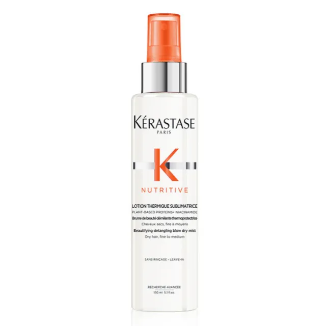 La Lotion Thermique Sublimatrice de Kérastase est une essence thermoprotectrice 230°c démêlante sans rinçage, idéale pour les cheveux secs fins à moyens.
