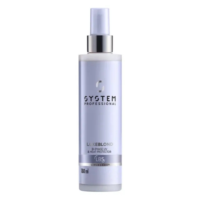 Le spray sans rinçage LuxeBlond de System Professional est un spray bi-phasé qui protège instantanément les cheveux contre les dommages causés par les UV et la chaleur jusqu’à 220°C et renforce la fibre capillaire contre la casse