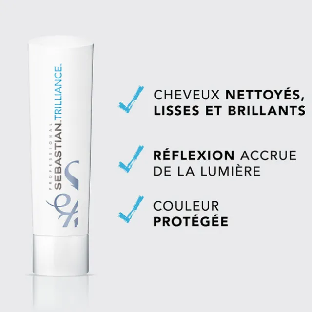 Essorez les cheveux et appliquez le conditionneur Sebastian Trilliance sur la chevelure, en insistant sur les pointes. Rincez abondamment.