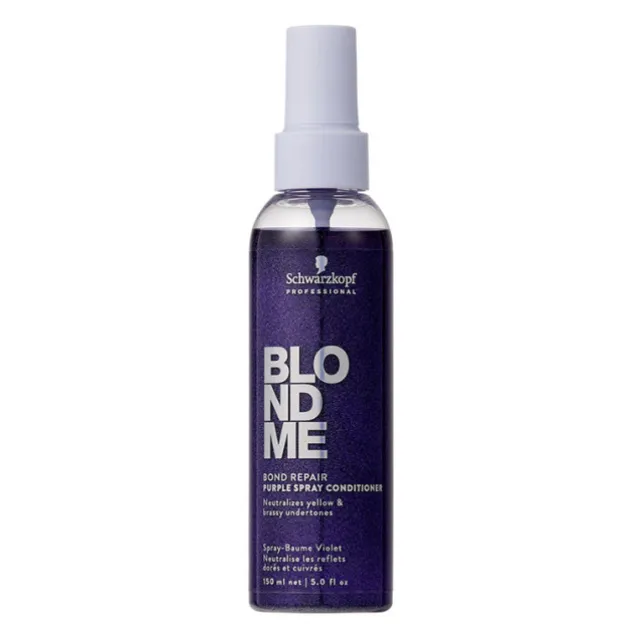Le Spray-Baume Violet BLONDME Bond Repair neutralise les reflets dorés et aide à prévenir les reflets cuivrés. Grâce à la formule, enrichie en huile d’amande et en bleuet, le spray violet pour cheveux blonds apporte des pigments froids afin de maintenir des cheveux blonds lumineux – sans altérer la couleur. La TECHNOLOGIE BOND REPAIR renforce les cheveux en créant des liaisons internes, réparant des dommages équivalents à deux services de décoloration en une seule utilisation. Appliqué sur cheveux secs ou humides, le spray-baume BLONDME Bond Repair démêle instantanément les cheveux et leur apporte une belle brillance argentée.