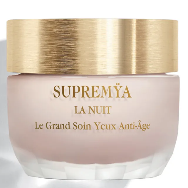 Appliquer le soir sur le contour de l’oeil et la paupière supérieure, après La Lotion et avant Le Grand Soin ou le Grand Baume Supremÿa.