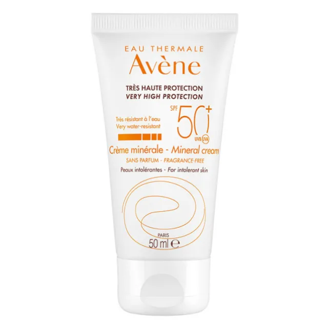 La formule à la texture riche et onctueuse de la Crème minérale SPF 50+ hydrate et protège la peau du visage.